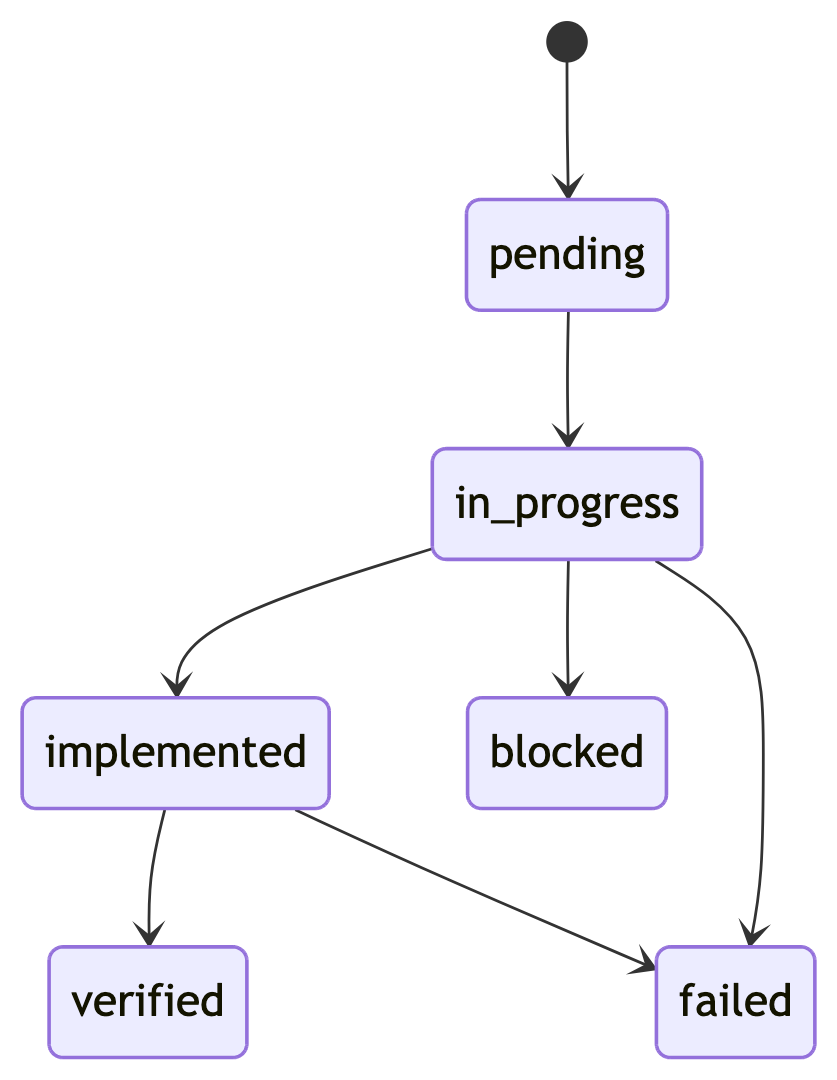 What states could a feature move through once I stopped trusting prose? This was the answer: