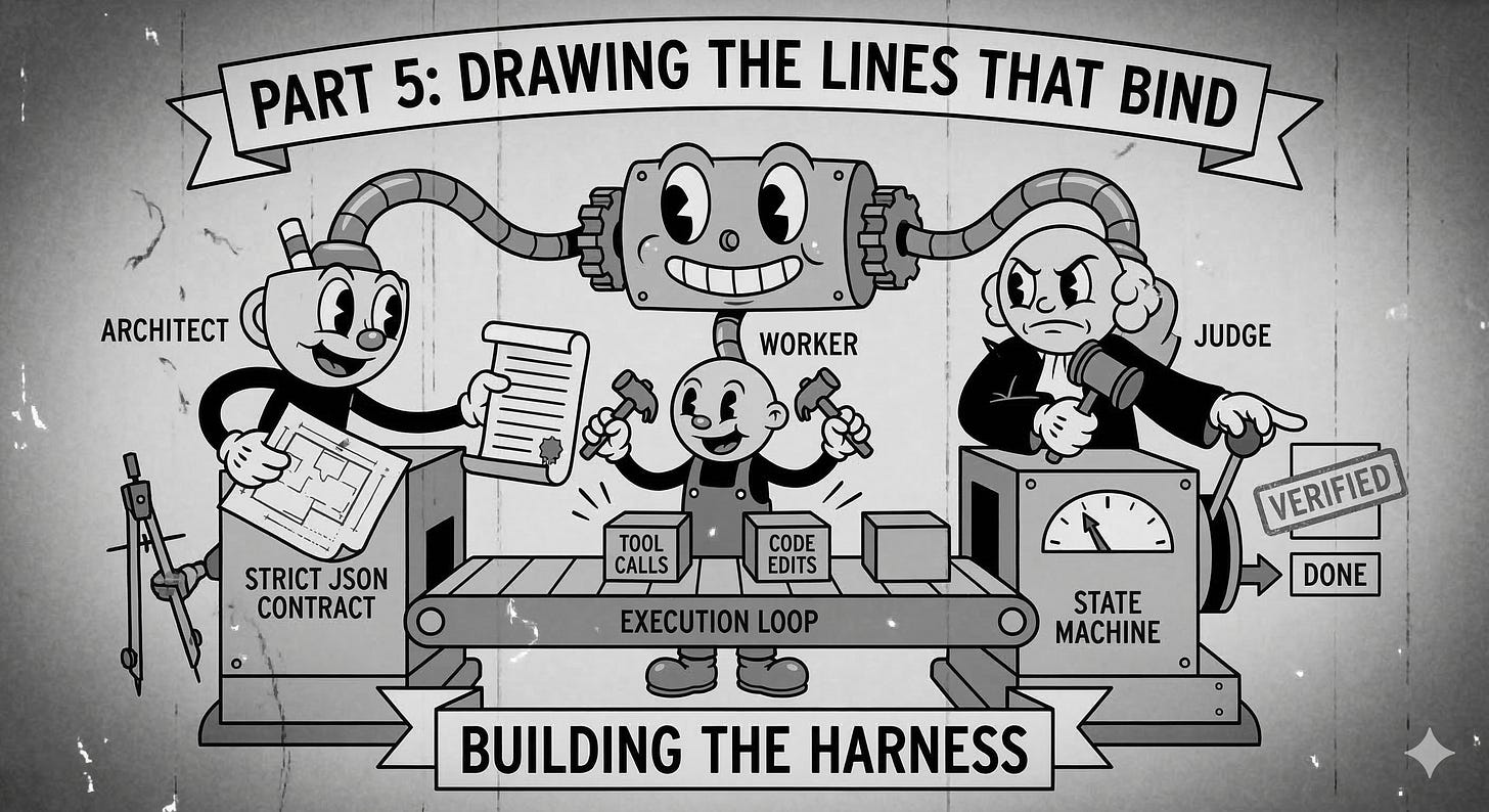 By the time I could observe my own behavior, a glaring problem remained. Too much of my state depended on what the model happened to feel like doing. Plans degraded as context windows filled, worker scope sprawled, and the definition of “done” drifted toward whatever the agent could persuade itself was true.